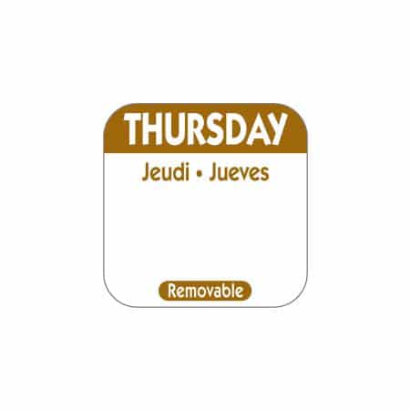 25mm Square Day of the Week Labels – Thursday (1000) – Handy Thursday labels keeping your kitchen rotation efficient.