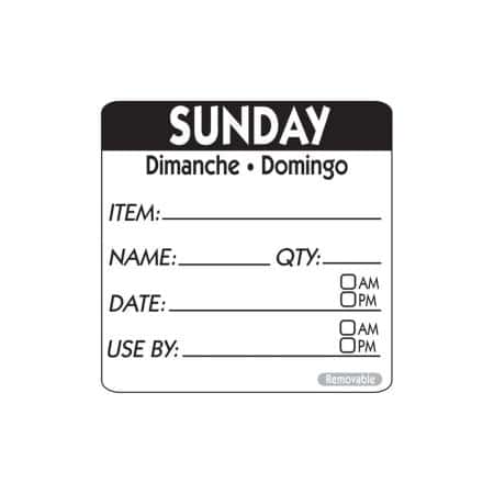 50mm Square Day of the Week Labels – Sunday (500) – Bold Sunday labels for clear food dating and stock management.