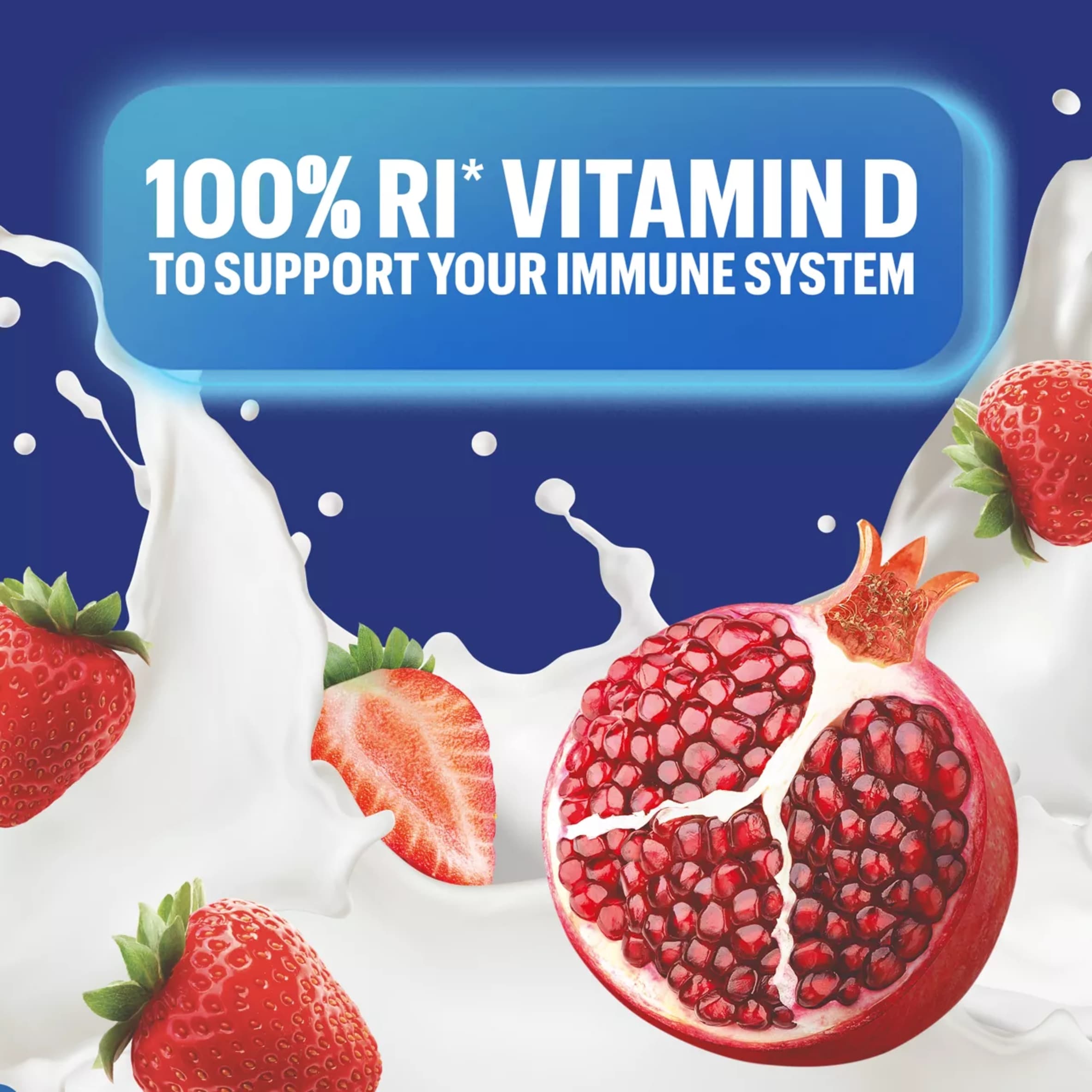 Boost your health with Actimel Triple Action 100% Vitamin D Strawberry & Pomegranate Yoghurt Drink, deliciously packed in convenient 8x100g servings.