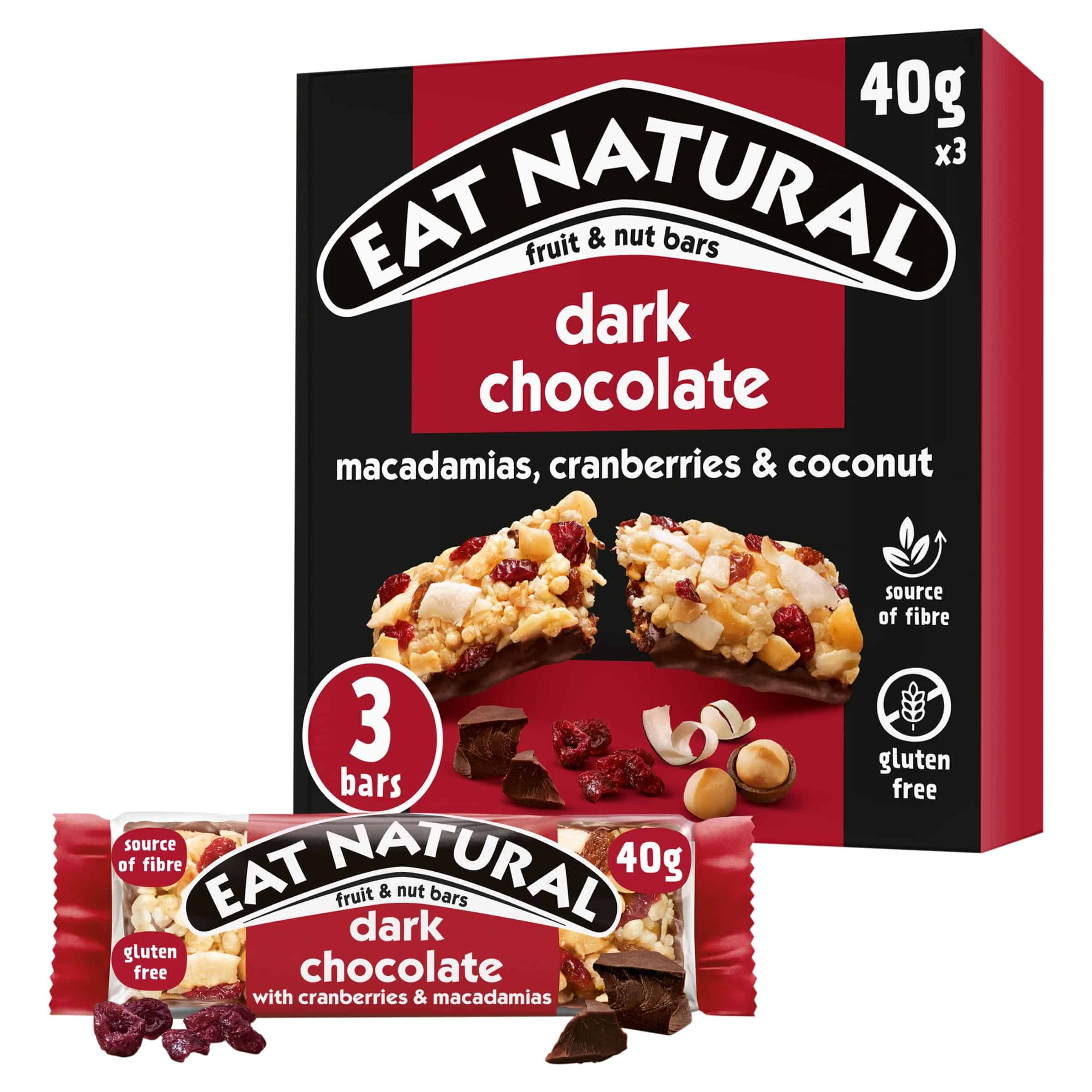 Eat Natural Fruit & Nut Bars with Dark Chocolate, Cranberries & Macadamias 3 x 40g
