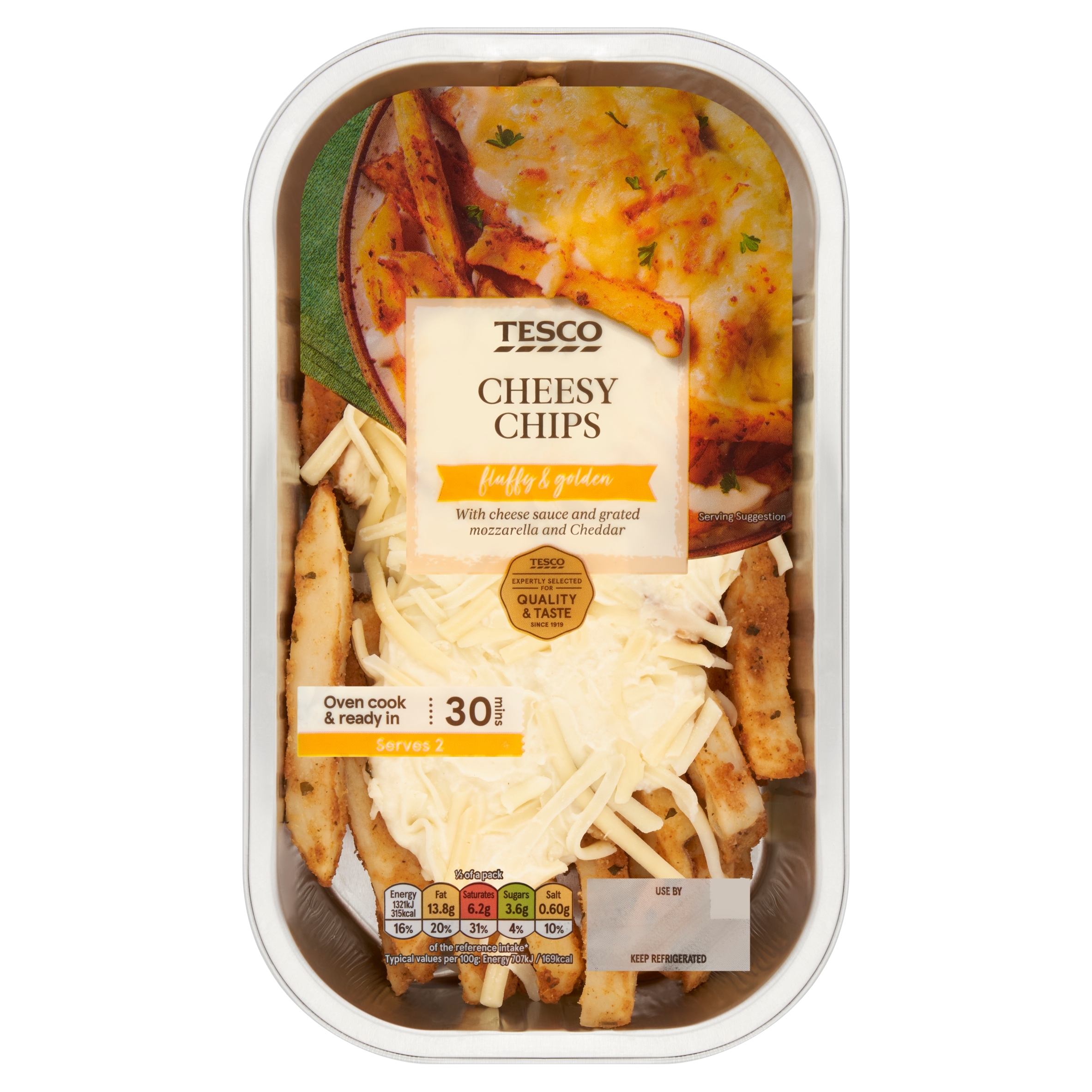 Indulge in Tesco Cheesy Chips with Grated Mozzarella & Cheddar 400g